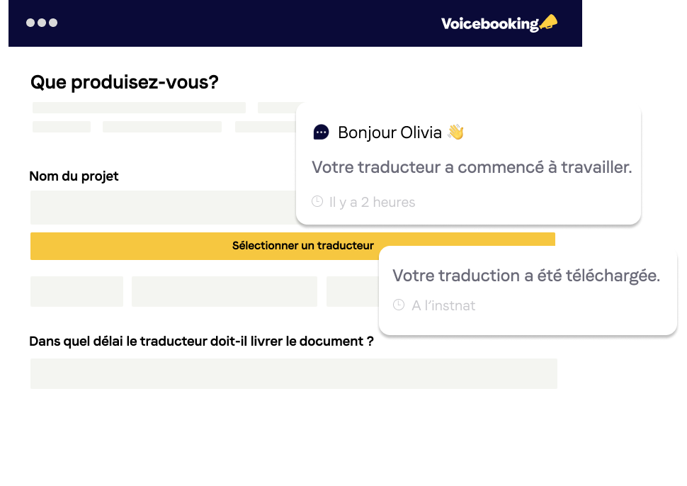 La traduction d’une voix-off consiste à traduire une publicité ou un projet dans une autre langue. Votre script et votre projet originaux seront donc traduits dans la langue de votre choix à l’oral, réenregistrés par une voix-off et superposés à vos visuels/projets originaux.